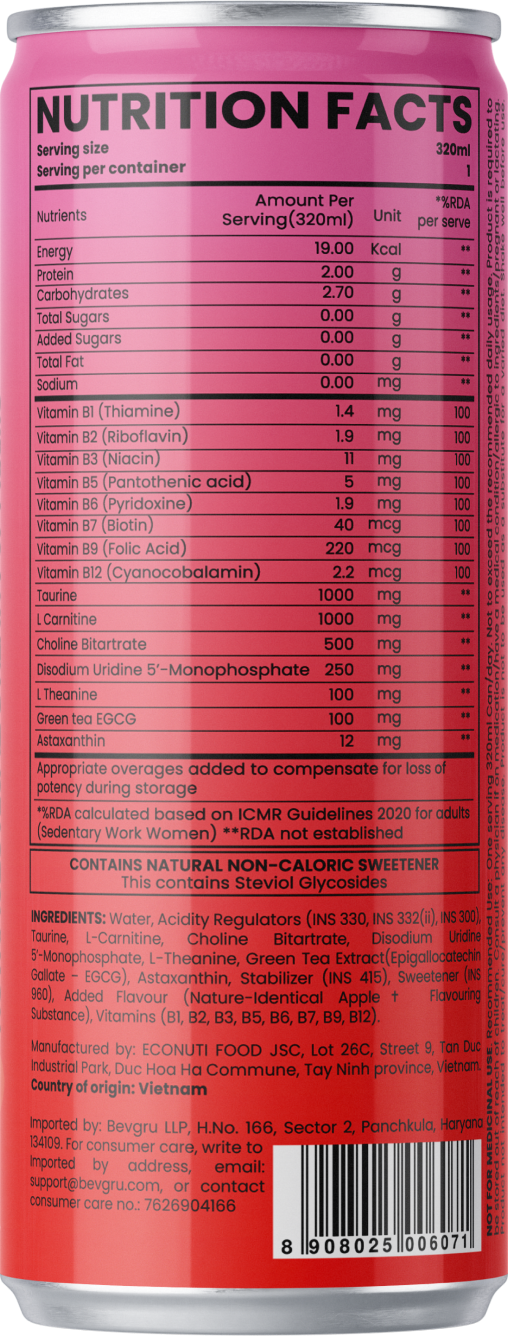 Our nutraceutical drink combines nature-identical flavors with powerful ingredients like Taurine, L-Carnitine, and Choline to boost energy, metabolism, and brain function. Enhanced with Green Tea EGCG and L-Theanine for antioxidant support and mental clarity, it includes essential vitamins for overall health. Sweetened naturally and stabilized for a smooth texture, this drink provides a refreshing and health-boosting experience.